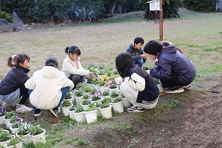 とても寒い日でしたが、緑化委員会はパンジー、ビオラのつぼみを摘んだり、