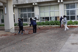 肥料を与えたりしていました。美化委員会は落ち葉集めをしていました。
