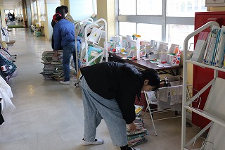 室内では、図書委員会は学級文庫の整理整頓、給食委員会は、配膳台磨きなど