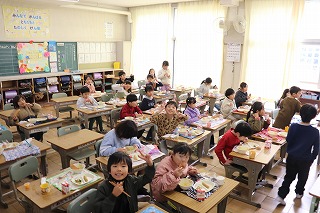 どこのクラスも二学期の最後の給食を楽しく食べていました。