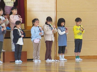 3年生から音楽の授業では「リコーダー」を扱います。今朝はリコーダー演奏で3曲披露してくれました。