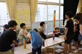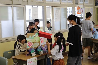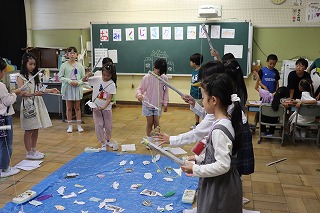 高学年の児童と低学年の児童が協力して、各ブースを運営して、