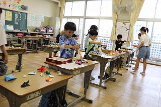 授業を行っています。今日も地域の方にサポートしていただきながら、