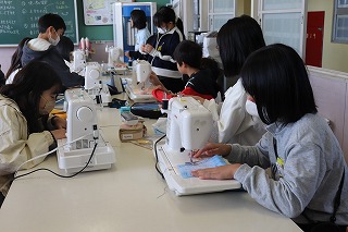 5年生は家庭科の授業でミシンを使った裁縫に取り組んでいます。