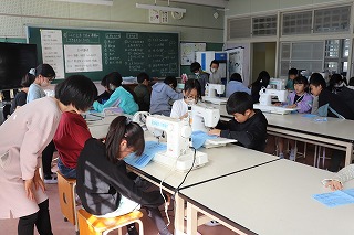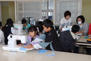 毎年ミシンの学習では地域の方やPTAの方に協力していただきながら