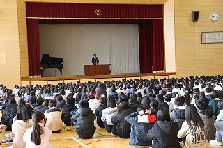 始業式では、みんなよい姿勢で校長先生の話を聞いていました。